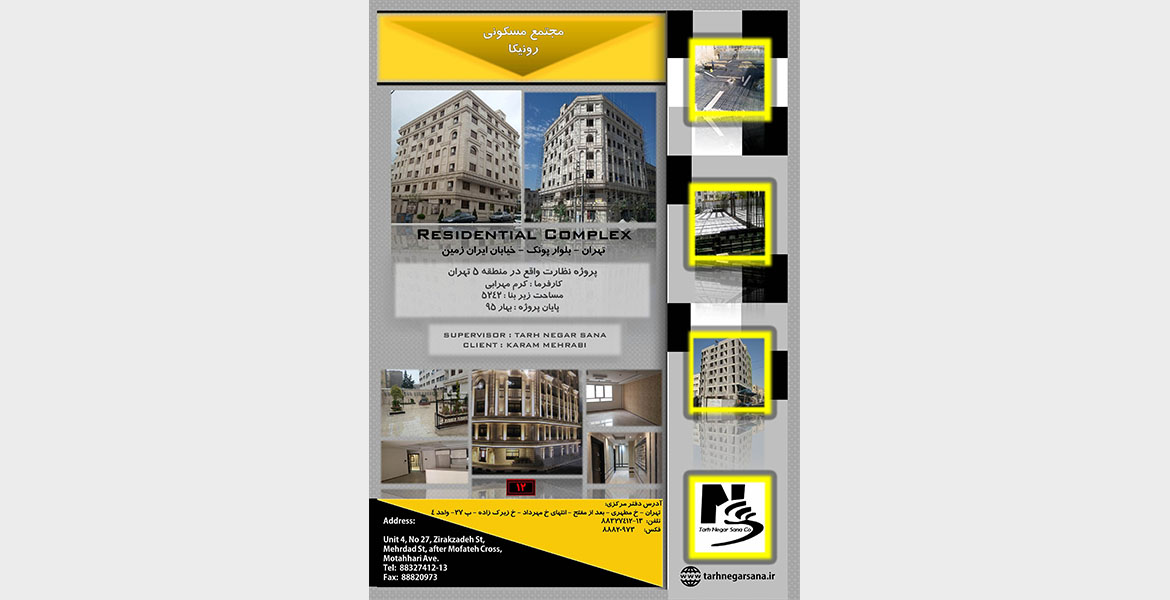 project factsLocation : Tehran - Iran Site area : 1000 m2 Project area : 5200 m2 Number of stories : 9 Building height : 30 m Market : Residential Weight : 620 ton Service : Supervision See also ...
